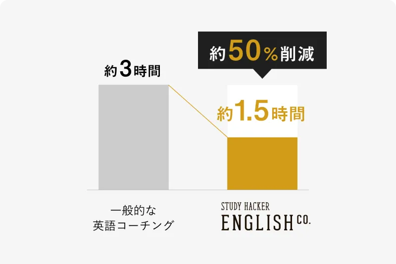 一般的な英語コーチングで必要とされる自主学習は1日3時間。ENGLISH COMPANYなら半分の時間で高い学習効果が得られます。